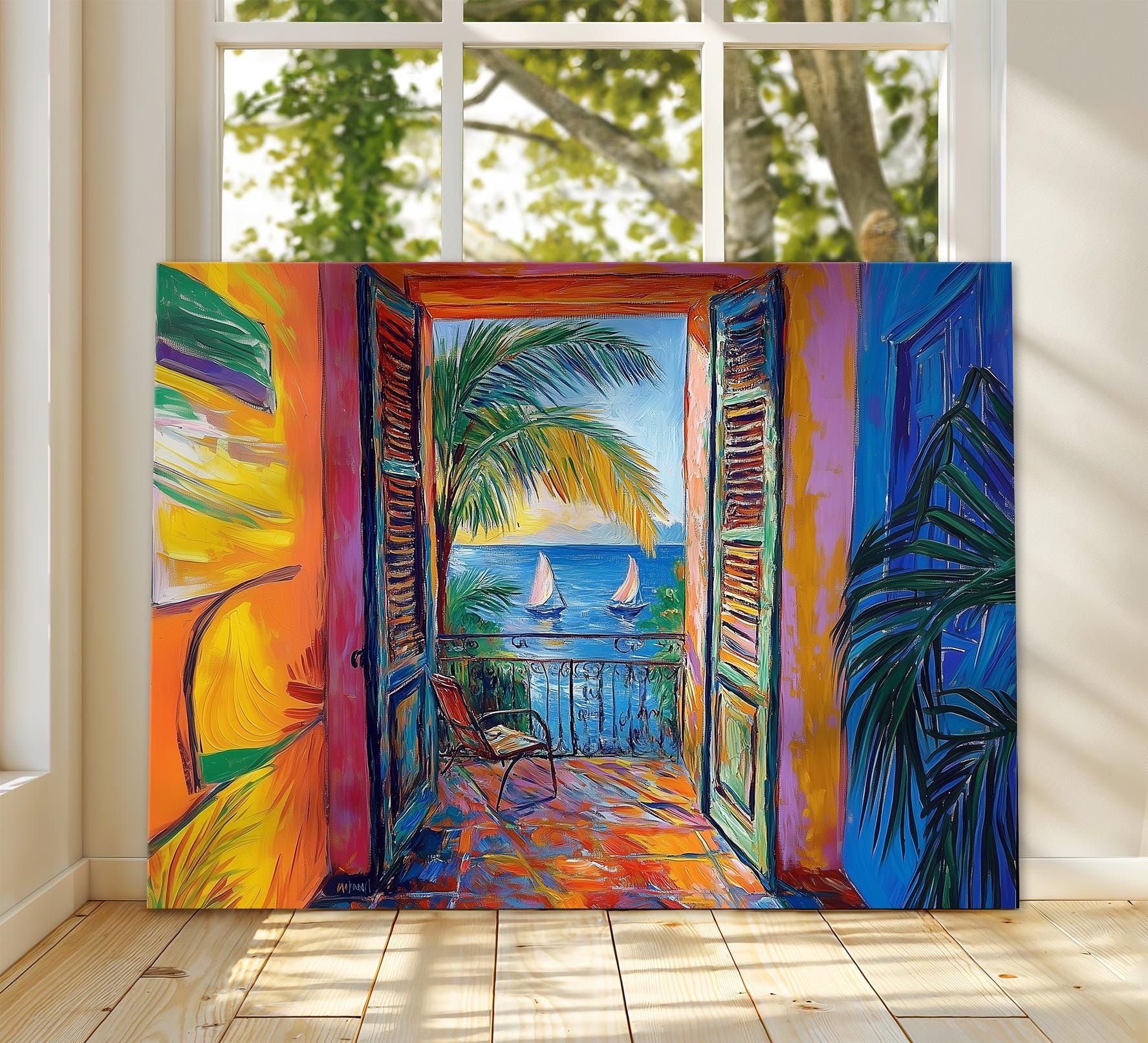 Open Window Henri Matisse Canvas, Henri Matisse Style Fauvism Painting, Modern Exhibition Print, Coastal Village, Harbour Boats, Ocean View
